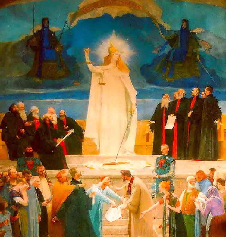 In 1905, Paul Robert unveiled his mural “Justice Lifts the Nations” in Lausanne, Switzerland, within the stairwell of the old Supreme Court Building. This artwork served as a daily visual prompt for judges heading to their courtrooms, reinforcing that justice is insightful and grounded in the divine absolutes provided by the Father God.