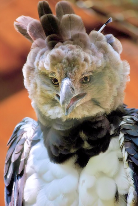 This eagle boasts a striking appearance, featuring a distinctive double crest of feathers on its head and a face resembling a scowling gargoyle. Its plumage is mainly dark gray, with a white belly and black-and-white striped legs. What’s most unsettling is its piercing gaze, which seems to size you up as though you could be its next meal.